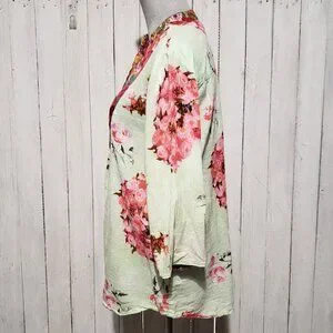 Antica Sartoria XXL 3 Top Tunic Green Pink Floral Boho Resort Beach Cottage