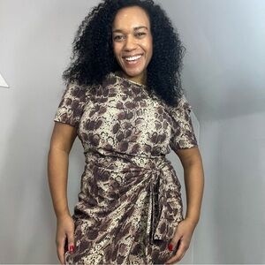 Vintage Silk Snakeskin Mobwife Wrap Dress Animal Print Office Siren Neutral Mini