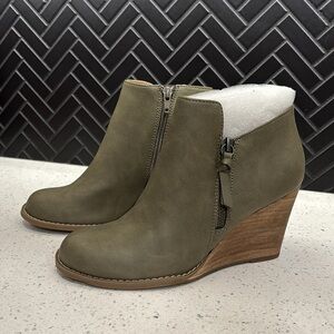 Report Olive Green Heeled Wedge Bootie, Size 7
