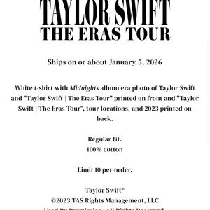 New T-shirt, comes with original bag and barcode. Size small is sealed, medium is open bag never worn. Check out my other swiftie merch to bundle!