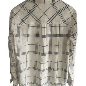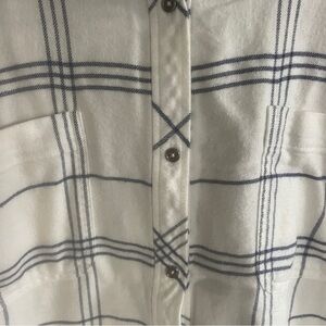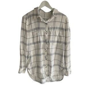 Athleta Womens Soft Button Up White Blue Plaid Shirt Size Medium