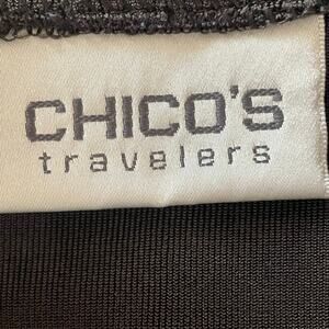 Chico's Travelers Black Slinky Knit Top Split V-neck Studded Long Sleeves XL/16. Great packable top. Comfortably. A little bit edgy with studded details around neckline. In excellent preowned condition.