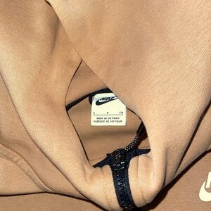Tan Nike jacket with full zip. Features a hood and sleek design. Sold as is