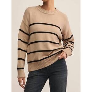 NEW Z SUPPLY boyfriend stripe sweater in biscuit