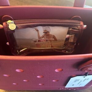 Stylish and durable, the Bitty Bogg Tote Bag is perfect for everyday use. Featuring a spacious interior and a chic design, this bag is both practical and fashionable. Color - mulled wine NWT Maroon