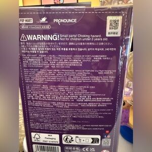 It combines plush and vinyl materials, with a soft purple fur body and a vinyl face, hands, and feet.