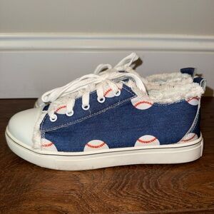 Step up your style with these blue baseball print sneakers. Perfect for casual outings, these shoes combine comfort with a sporty design.
