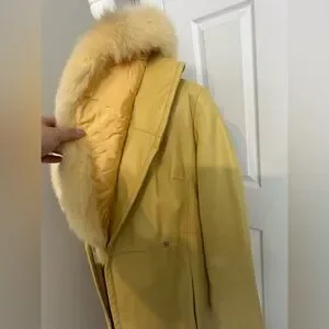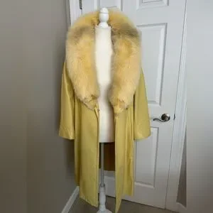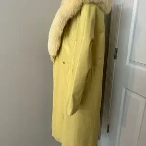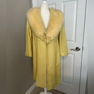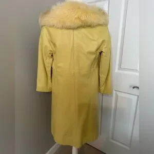 70s Vintage Yellow Leather Coat with Fur Collar size 6.