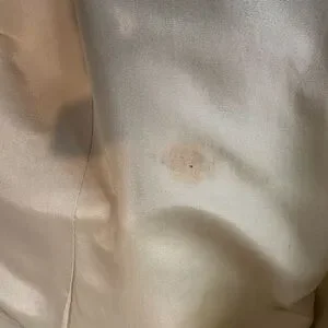 Fur collar is discolored at top of shoulders. Not really noticeable when it’s folded down.