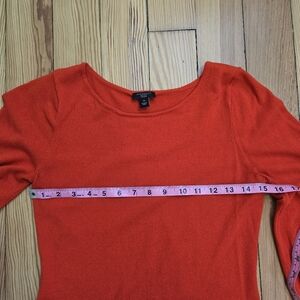 Product Details: Make a statement in this vibrant red Ann Taylor Factory knit top. The standout feature is the elegant bishop sleeves, which offer a romantic, voluminous silhouette that is both modern and timeless. Crafted from a soft, comfortable knit, this top transitions effortlessly from a polished office look to a chic evening ensemble.