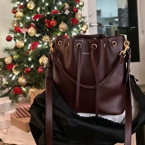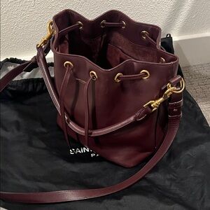 Saint Laurent shoulder/bucket bag in dark red calf skin leather. Features gold-tone hardware and adjustable strap. I have the dust bag but not card. Posh will authenticate all items sold over $500