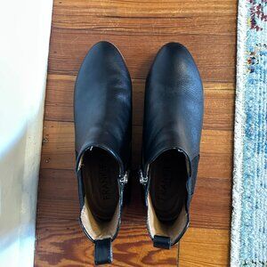 Podiatrist-designed bootie-style shoes, featuring a rounded toe, buttery leather and stylish side-gusseting