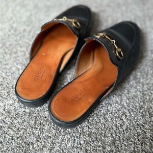 Authentic Gucci black leather Princetown mule loafers with gold horse bit hardware. Women’s European size 37 (US 7). Well-loved but lots of life left - price reflects wear, please see photos for detail.
