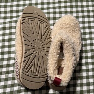 Soft and plush cream slippers. Burgundy accents add style. Ideal for cozy comfort.
