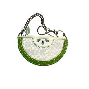 Vintage Coach fruit-shaped coin purse featuring a signature logo fabric and key chain
