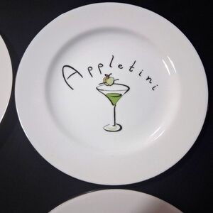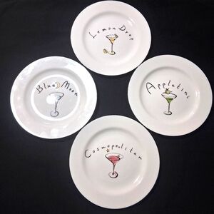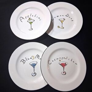 Pottery Barn Martini Plates Dishes Barware Set Of Four 7.5" Snack Drinks Cocktails