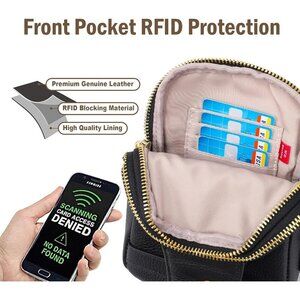 Features: Perfectly sized at 7.5 inches high, 5.5 inches long, and 2.5 inches wide, this lightweight yet spacious bag comfortably fits your phone, wallet, keys, and small accessories. Crafted from genuine leather with durable lining and high-quality hardware, it balances style with longevity. The intelligent anti-theft design includes a side lock and RFID-blocking card slots to keep your belongings safe from digital theft. An adjustable D-ring strap gives you a customized, comfortable fit, whether you're traveling, working, or running errands.
