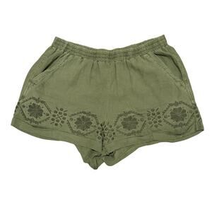 Anthropologie Mermaid Olive Green Embroidered Linen Blend Shorts Women Medium