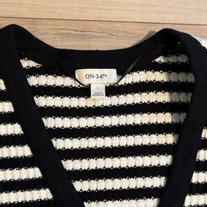Chic and stylish black and white striped sweater for women. Perfect for any occasion.
