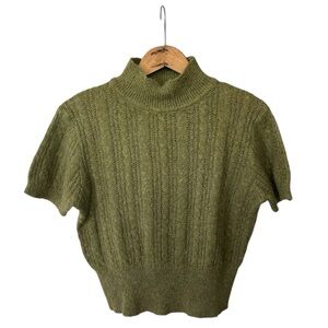 Cider | Women’s Olive Green Short Sleeve Cable Knit Mock Neck Sweater Size 0XL