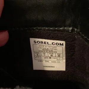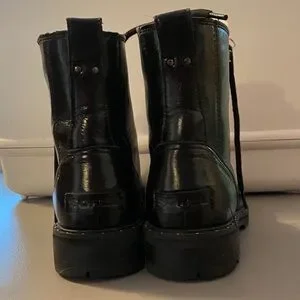Sorel combat boots in sleek black leather. Features cozy cream lining. Stylish and durable. Minor cresting at toes. Have only been worn a handful of times.