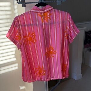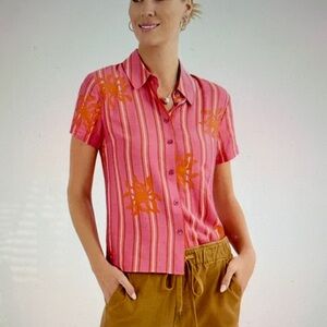 CAbi Cottage Top - Pink and Orange Button Down Shirt