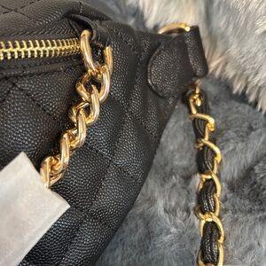 Brand new bag by Precision for Chanel beauty VIPs. Leather with the CC qualities, large gold chain and body strap.