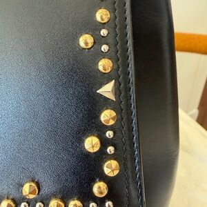 Salvatore Ferragamo Black Leather Satchel with Gold & Silver Studs