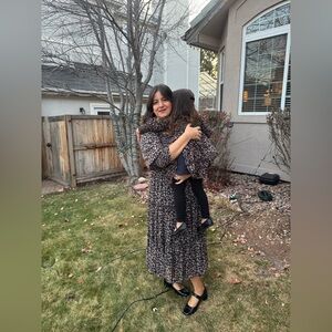 Elegant Ivy City demi women's dress featuring a beautiful floral pattern in black and pink. Perfect for any occasion!