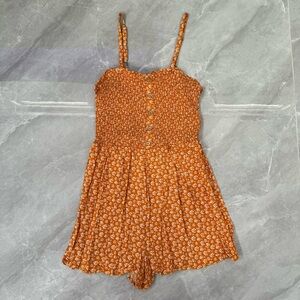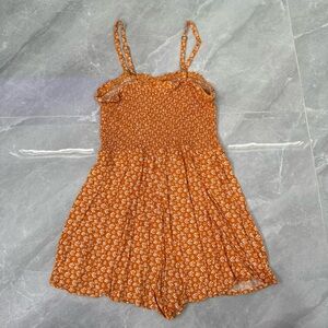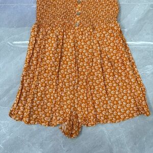 Good condition - Women’s Wild Fable Target Floral Spaghetti Strap Romper Jumpsuit. Has adjustable straps and elastic in bust area to make it form fitting. Colors: orange and white. Size: M.