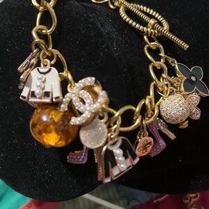 Elegant charm bracelet featuring gold and black accents. Perfect for adding a touch of sophistication to any outfit. Charm Bracelet. Fits a 7” inch wrist.