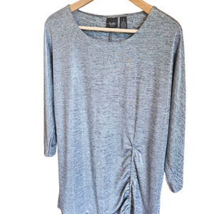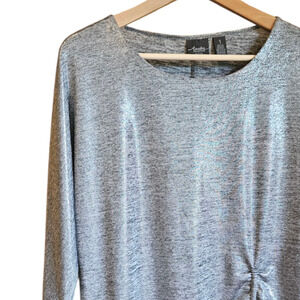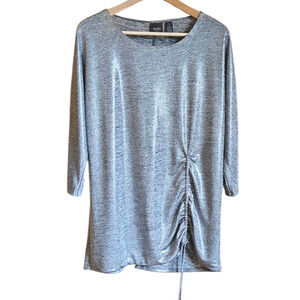 Chico's Travelers Stretchy Blouse Shiny Silver 3/4 Sleeve Women's 1 ( Medium )
