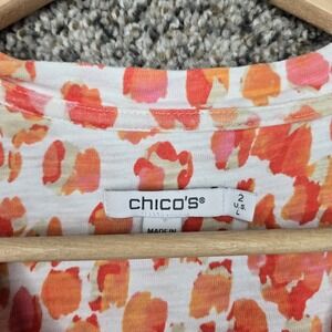 Chicos Top Womens 2 US Large Orange V Neck Slub Knit Short Sleeve Tee Casual