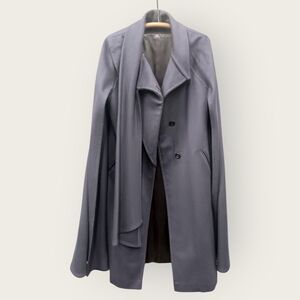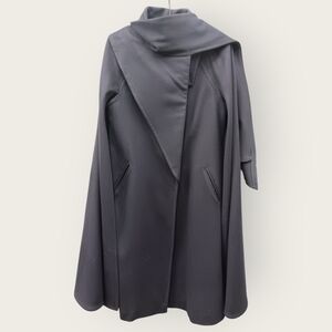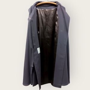 This cape coat is breathtaking. The details are exactly what you'd want from a coat out of this era. Sleeveless with a beautiful flow, hidden buttons, built in scarf and its absolutely gorgeous. The color is a soft purple mauve and screams sophistication. There is minimal wear to the liner and lifted stitch in the armpit that's does absolutely nothing to the look or function. Just wanted to notate it. This is a staple piece to anyone's bygone collection.
