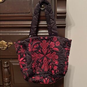 Johnny Was Black Tote with Red Embroidery