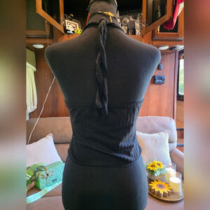 This black halter top from Shein is perfect for any occasion. Its sleek design offers a flattering fit, making it a versatile addition to your wardrobe. New without tags. It is mid-grade quality, so it is a soft, thicker, stretchy material.