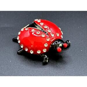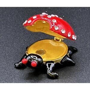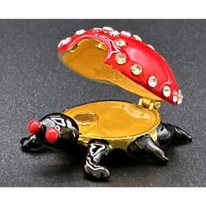 Ladybug Shaped Jewelry Trinket Box with Rhinestone Decoration