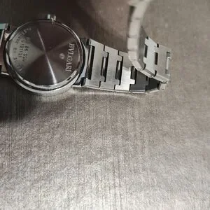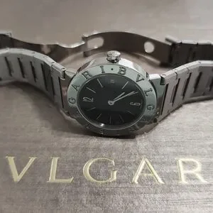 Elegant Bulgari Zero watch with a sleek stainless steel band. Features a black dial with silver accents. Perfect for any occasion. Purchase from Bulgari store in Bal Harbor, North Miami FL. 100% original. Works great and I have extra links! GREAT FOR Stacking AS WELL. Selling now for $5,800.00. I paid $3,500.00. Guys this watch is beautiful, I just don't wear watches anymore. I will include a beautiful Bulgary book that is brand new with the purchase of the watch with all the history of Bulgari as a gift.