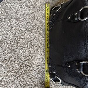 Chic black satchel with silver hardware. Stylish and versatile.