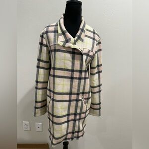 Finders Keepers Women’s wool blend “long time” Cream Plaid Coat. Size XS. Very good condition. No holes or stains.