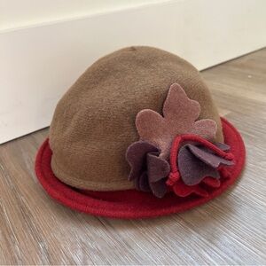 Vintage Scala 100% Wool Hat Brown Red Adjustable Wire Brim