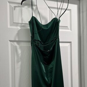 This elegant green dress features delicate spaghetti straps and a flattering silhouette.