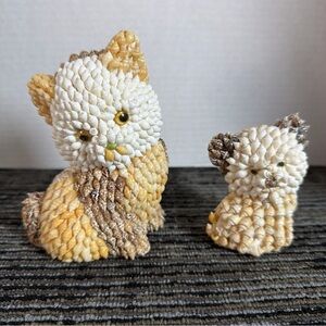 Sea Shell Folk Art Cat Figurine Set-Vintage
