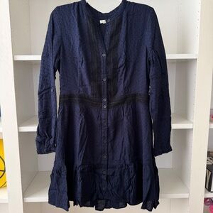 Shoshanna blue and black peasant dress. Button down front. Ruffle hem. Size 8. In good preloved condition, some wear on the dots in some areas