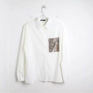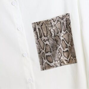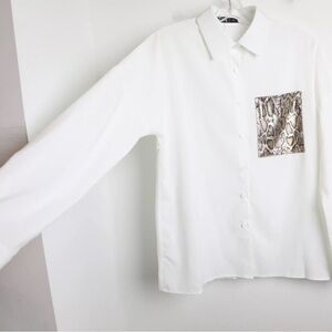 Stylish white button down shirt. Features snake print pocket. Matching Snake print Leggings. Perfect for casual wear. Excellent NWT condition - no flaws. Ship same or Next Day! Love it? Buy it! Offers Welcomed! Like for Price Drops.