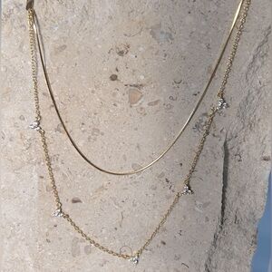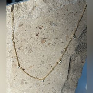 This elegant necklace comes in Classic Sterling Silver or 14k Gold-Plated Sterling Silver S925 and features 5 sparkling Cubic Zirconia floral cluster accents, perfect for adding a touch of sophistication to any outfit.