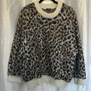 Stylish oversized fuit leopard pattern crewneck sweater. Soooooo cozy and soft texture. Perfect for everyday wear. Worn once.