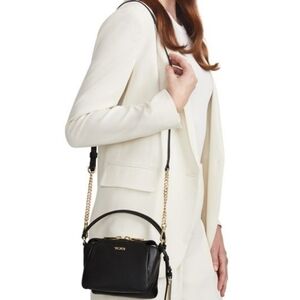 TUMI Voyageur Belle Micro Crossbody Black Gold Chain Strap Keyholder Travel Jet