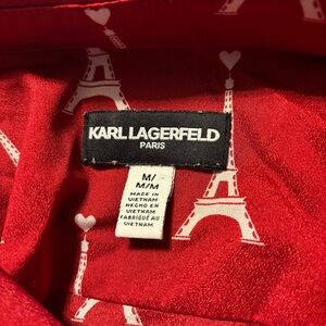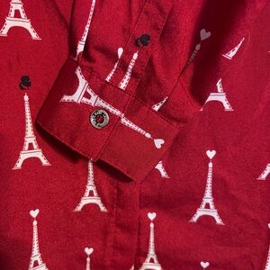 Karl Lagerfeld Red Eiffel Tower Print Button Down Shirt Women’s Sz Medium