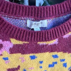 Umgee Women's Burgundy and Yellow Animal Print Sweater